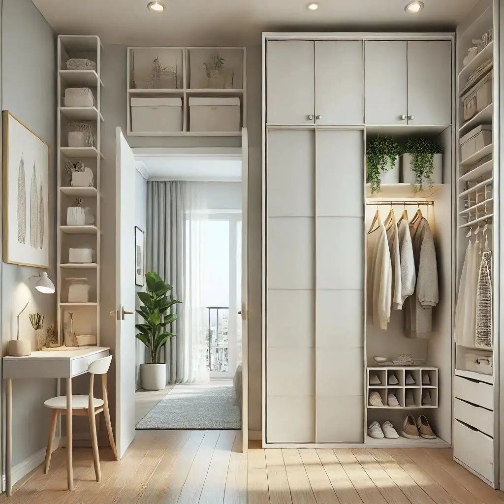 Mirrored doors create the illusion of a larger room.