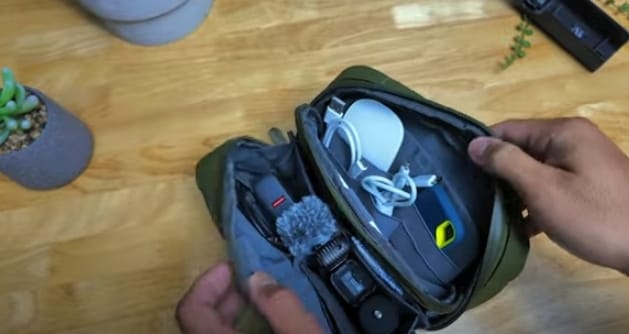 The pouch has five grab handles—a wide top handle, two side handles, and small loops for attaching accessories or a shoulder strap. Yes, you can even convert it into a tech sling bag using a strap and G-hook. If you’re carrying a small camera like a DJI Osmo Pocket 3 with accessories, this could double as a content creator sling.