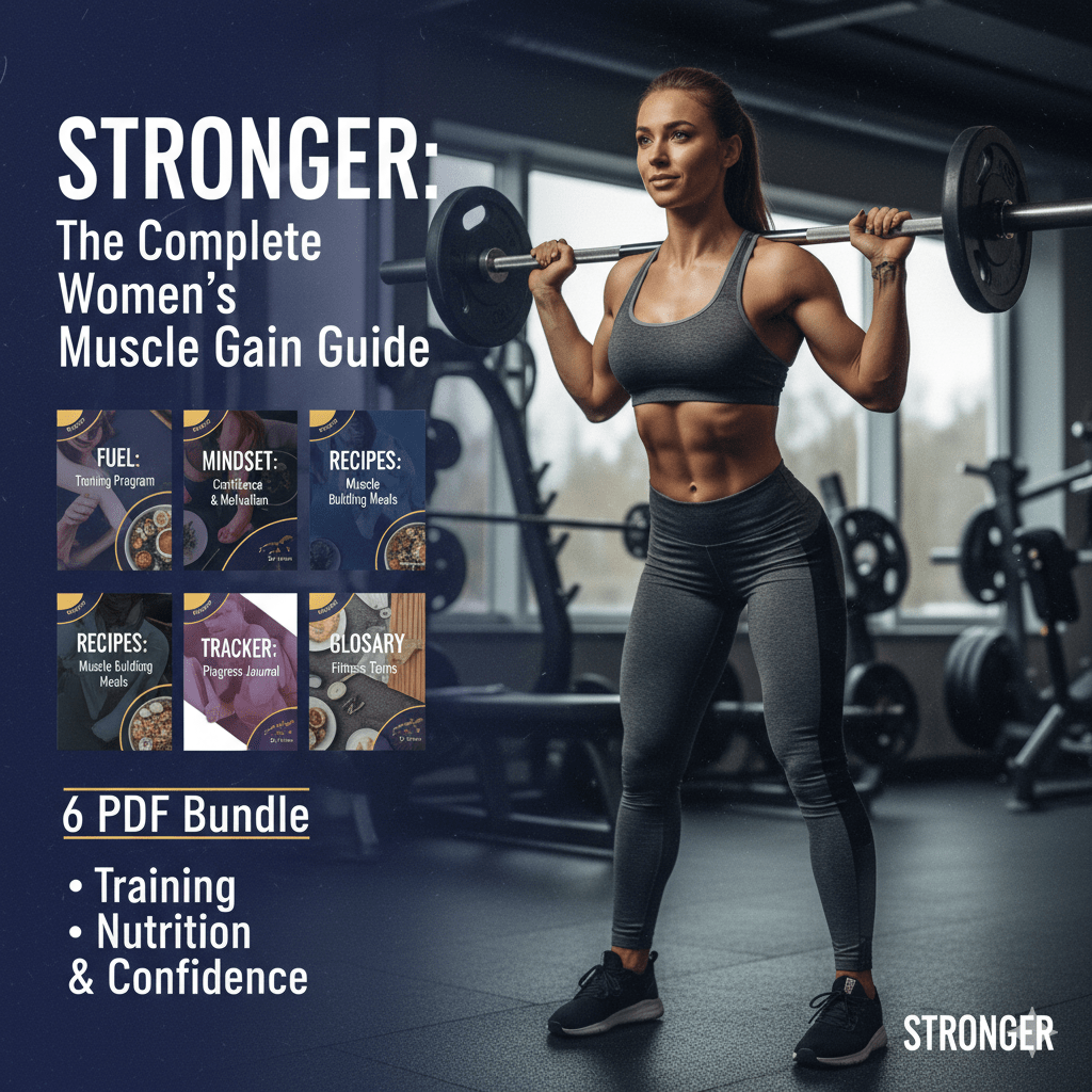 → Ready to start? Get STRONGER: The Complete Women’s Muscle Gain Guide (6 PDF Bundle).