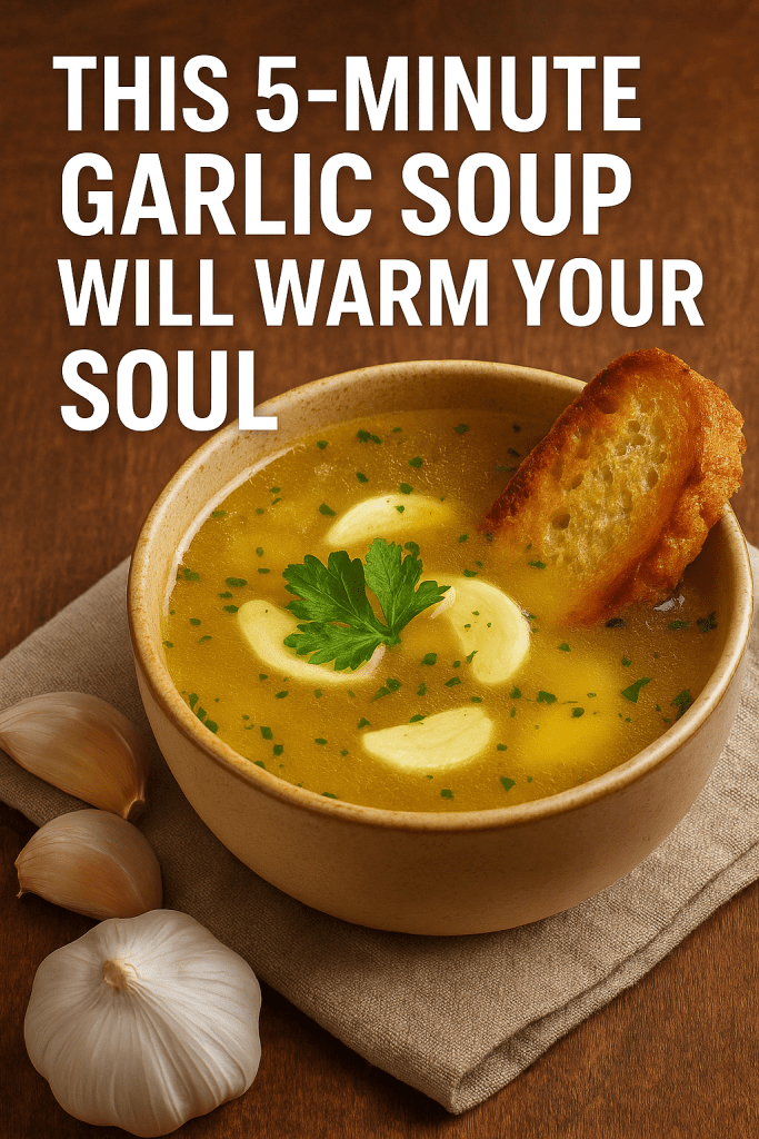 This five-minute garlic soup ticks a lot of boxes: it’s quick, simple, nutritious, and emotionally comforting. With garlic’s well-documented health benefits (immune support, cardiovascular support, and antimicrobial properties) and the soothing effect of warm liquid and aroma, this recipe earns its place as a go-to for “warm your soul” moments.